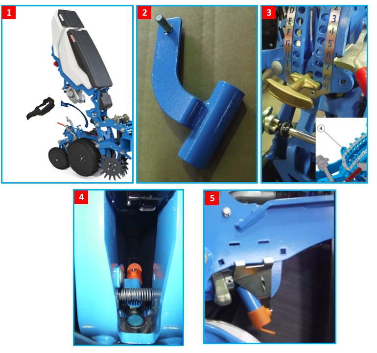 Diese Halterung passt sich dem Originalrohr an und ermöglicht es, die Achse des Streuers korrekt auszurichten und eine optimale Verteilung des insektiziden Mikrogranulats rund um den Samen zu erzielen