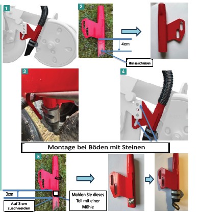 Meistens ist bei Sämaschinen, die 2 bis 5 Jahre alt sind, das Original-Schar das linke. Der Abstieg muss wie in der obigen Abbildung auf 4 cm gekürzt werden.